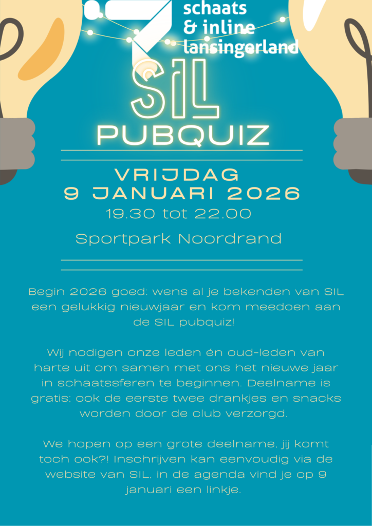 We trappen het nieuwe jaar gezellig af met de SIL Pubquiz op vrijdag 9 januari 2026. Leden en oud leden van Schaats & Inline Lansingerland is van harte welkom om deel te nemen aan deze leuke en verrassende quizavond!